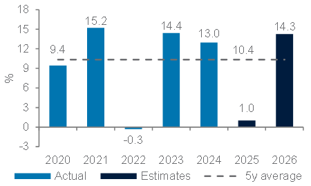 Projected EPS growth in 2026 for MSCI China index is over 14%, above its 5-year average