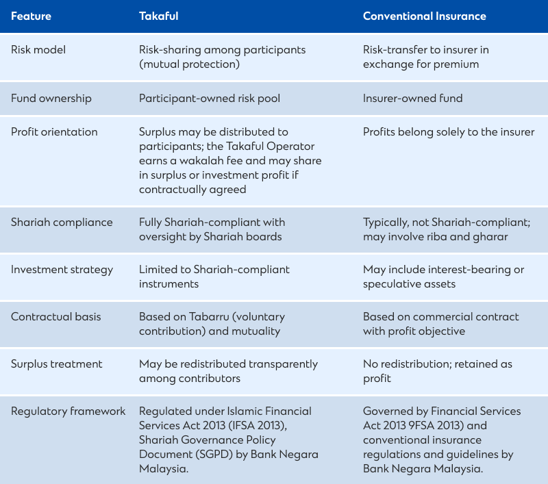 Structural differences between Takaful and conventional insurance models