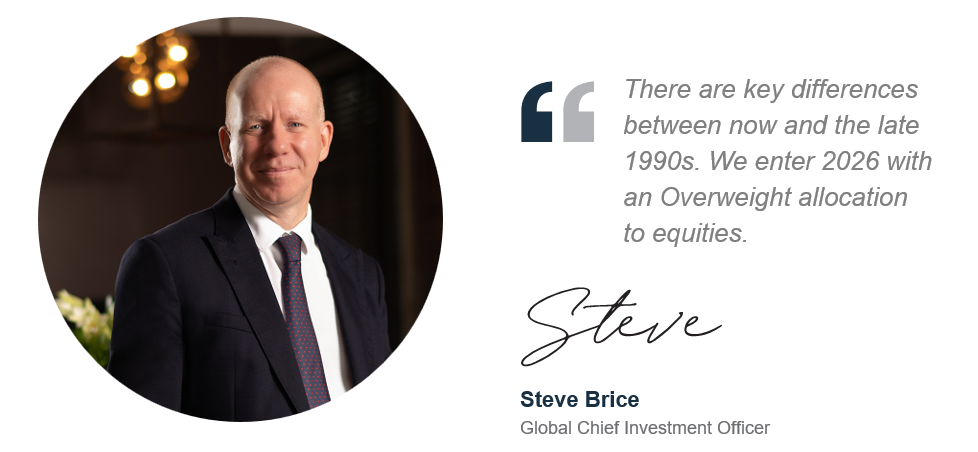 Given we do not see a bubble forming (yet), we enter 2026 with a slight Overweight allocation to global equities.