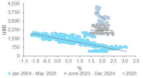 Fig. 2 Besides dollar diversification demand, interest rates could be returning as positive driver for gold