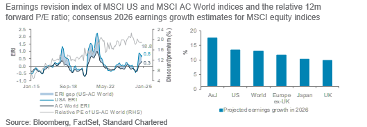 We remain constructive on equities in 2026 and expect markets to push higher through the year driven by earnings growth, led by the US and Asia ex-Japan.
