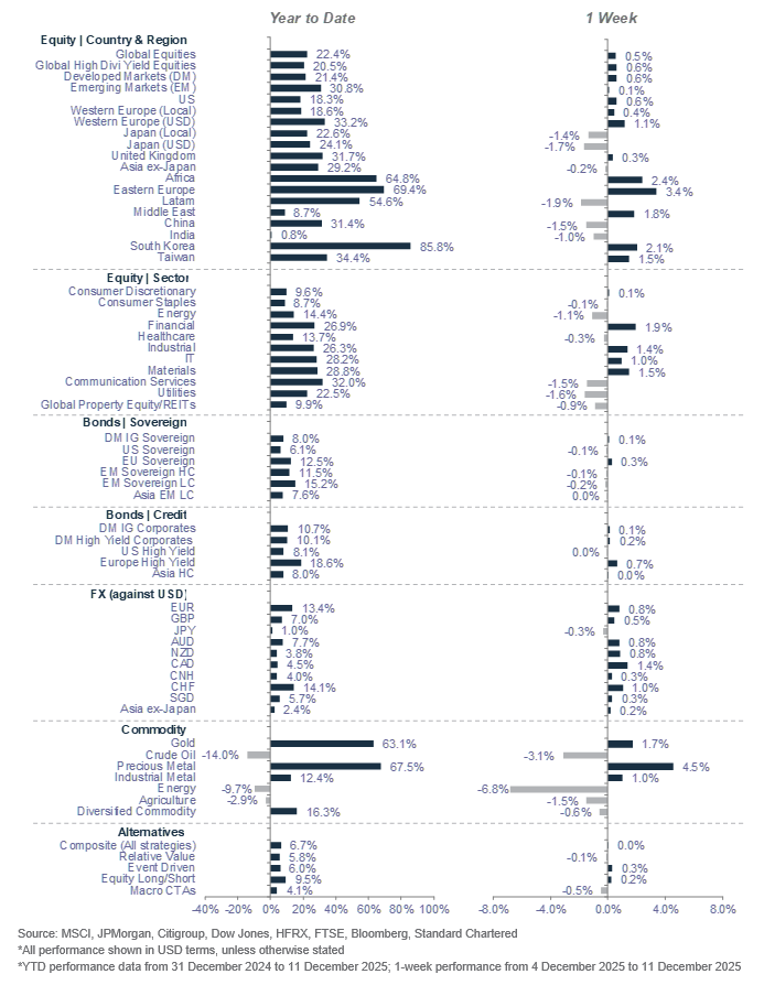 Bahrain: This document is being distributed in Bahrain by Standard Chartered Bank, Bahrain Branch, having its address at P.O. 29, Manama, Kingdom of Bahrain, is a branch of Standard Chartered Bank and is licensed by the Central Bank of Bahrain as a conventional retail bank. Botswana: This document is being distributed in Botswana by, and is attributable to, Standard Chartered Bank Botswana Limited which is a financial institution licensed under the Section 6 of the Banking Act CAP 46.04 and is listed in the Botswana Stock Exchange. Brunei Darussalam: This document is being distributed in Brunei Darussalam by, and is attributable to, Standard Chartered Bank (Brunei Branch) | Registration Number RFC/61 and Standard Chartered Securities (B) Sdn Bhd | Registration Number RC20001003. Standard Chartered Bank is incorporated in England with limited liability by Royal Charter 1853 Reference Number ZC18. Standard Chartered Securities (B) Sdn Bhd is a limited liability company registered with the Registry of Companies with Registration Number RC20001003 and licensed by Brunei Darussalam Central Bank as a Capital Markets Service License Holder with License Number BDCB/R/CMU/S3-CL and it is authorised to conduct Islamic investment business through an Islamic window. China Mainland: This document is being distributed in China by, and is attributable to, Standard Chartered Bank (China) Limited which is mainly regulated by National Financial Regulatory Administration (NFRA), State Administration of Foreign Exchange (SAFE), and People’s Bank of China (PBOC). Hong Kong: In Hong Kong, this document, except for any portion advising on or facilitating any decision on futures contracts trading, is distributed by Standard Chartered Bank (Hong Kong) Limited (“SCBHK”), a subsidiary of Standard Chartered PLC. SCBHK has its registered address at 32/F, Standard Chartered Bank Building, 4-4A Des Voeux Road Central, Hong Kong and is regulated by the Hong Kong Monetary Authority and registered with the Securities and Futures Commission (“SFC”) to carry on Type 1 (dealing in securities), Type 4 (advising on securities), Type 6 (advising on corporate finance) and Type 9 (asset management) regulated activity under the Securities and Futures Ordinance (Cap. 571) (“SFO”) (CE No. AJI614). The contents of this document have not been reviewed by any regulatory authority in Hong Kong and you are advised to exercise caution in relation to any offer set out herein. If you are in doubt about any of the contents of this document, you should obtain independent professional advice. Any product named herein may not be offered or sold in Hong Kong by means of any document at any time other than to “professional investors” as defined in the SFO and any rules made under that ordinance. In addition, this document may not be issued or possessed for the purposes of issue, whether in Hong Kong or elsewhere, and any interests may not be disposed of, to any person unless such person is outside Hong Kong or is a “professional investor” as defined in the SFO and any rules made under that ordinance, or as otherwise may be permitted by that ordinance. In Hong Kong, Standard Chartered Private Bank is the private banking division of SCBHK, a subsidiary of Standard Chartered PLC. Ghana: Standard Chartered Bank Ghana Limited accepts no liability and will not be liable for any loss or damage arising directly or indirectly (including special, incidental or consequential loss or damage) from your use of these documents. Past performance is not indicative of future results and no representation or warranty is made regarding future performance. You should seek advice from a financial adviser on the suitability of an investment for you, taking into account these factors before making a commitment to invest in an investment. To unsubscribe from receiving further updates, please send an email to feedback.ghana@sc.com. Please do not reply to this email. Call our Priority Banking on 0302610750 for any questions or service queries. You are advised not to send any confidential and/or important information to Standard Chartered via e-mail, as Standard Chartered makes no representations or warranties as to the security or accuracy of any information transmitted via e-mail. Standard Chartered shall not be responsible for any loss or damage suffered by you arising from your decision to use e-mail to communicate with the Bank. India: This document is being distributed in India by Standard Chartered in its capacity as a distributor of mutual funds and referrer of any other third party financial products. Standard Chartered does not offer any ‘Investment Advice’ as defined in the Securities and Exchange Board of India (Investment Advisers) Regulations, 2013 or otherwise. Services/products related securities business offered by Standard Charted are not intended for any person, who is a resident of any jurisdiction, the laws of which imposes prohibition on soliciting the securities business in that jurisdiction without going through the registration requirements and/or prohibit the use of any information contained in this document. Indonesia: This document is being distributed in Indonesia by Standard Chartered Bank, Indonesia branch, which is a financial institution licensed and supervised by Otoritas Jasa Keuangan (Financial Service Authority) and Bank Indonesia. Jersey: In Jersey, Standard Chartered Private Bank is the Registered Business Name of the Jersey Branch of Standard Chartered Bank. The Jersey Branch of Standard Chartered Bank is regulated by the Jersey Financial Services Commission. Copies of the latest audited accounts of Standard Chartered Bank are available from its principal place of business in Jersey: PO Box 80, 15 Castle Street, St Helier, Jersey JE4 8PT. Standard Chartered Bank is incorporated in England with limited liability by Royal Charter in 1853 Reference Number ZC 18. The Principal Office of the Company is situated i