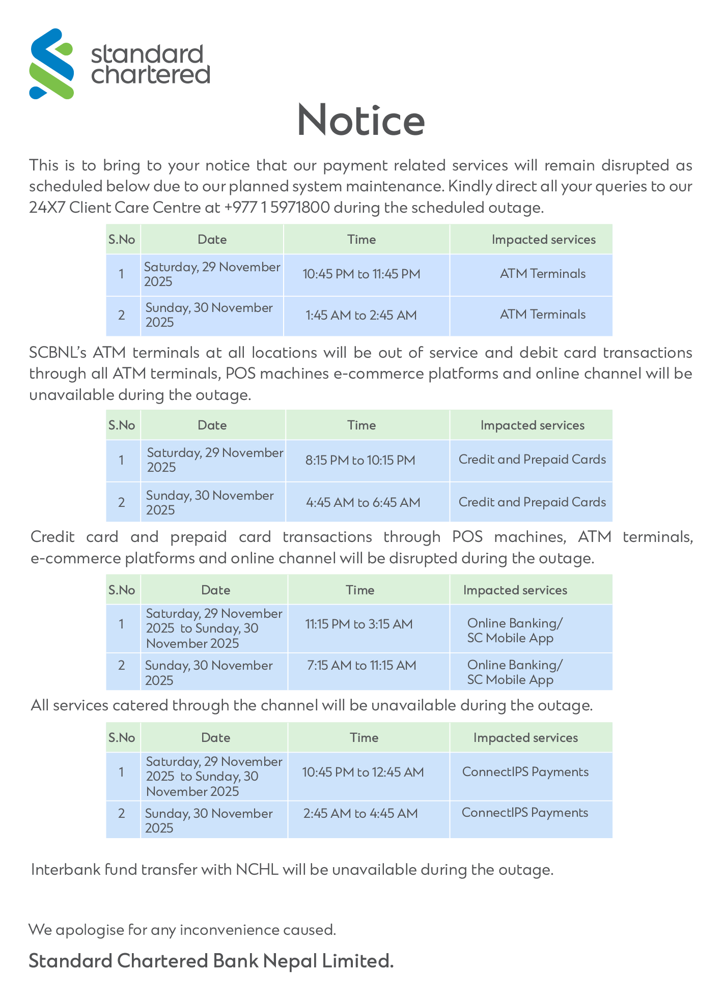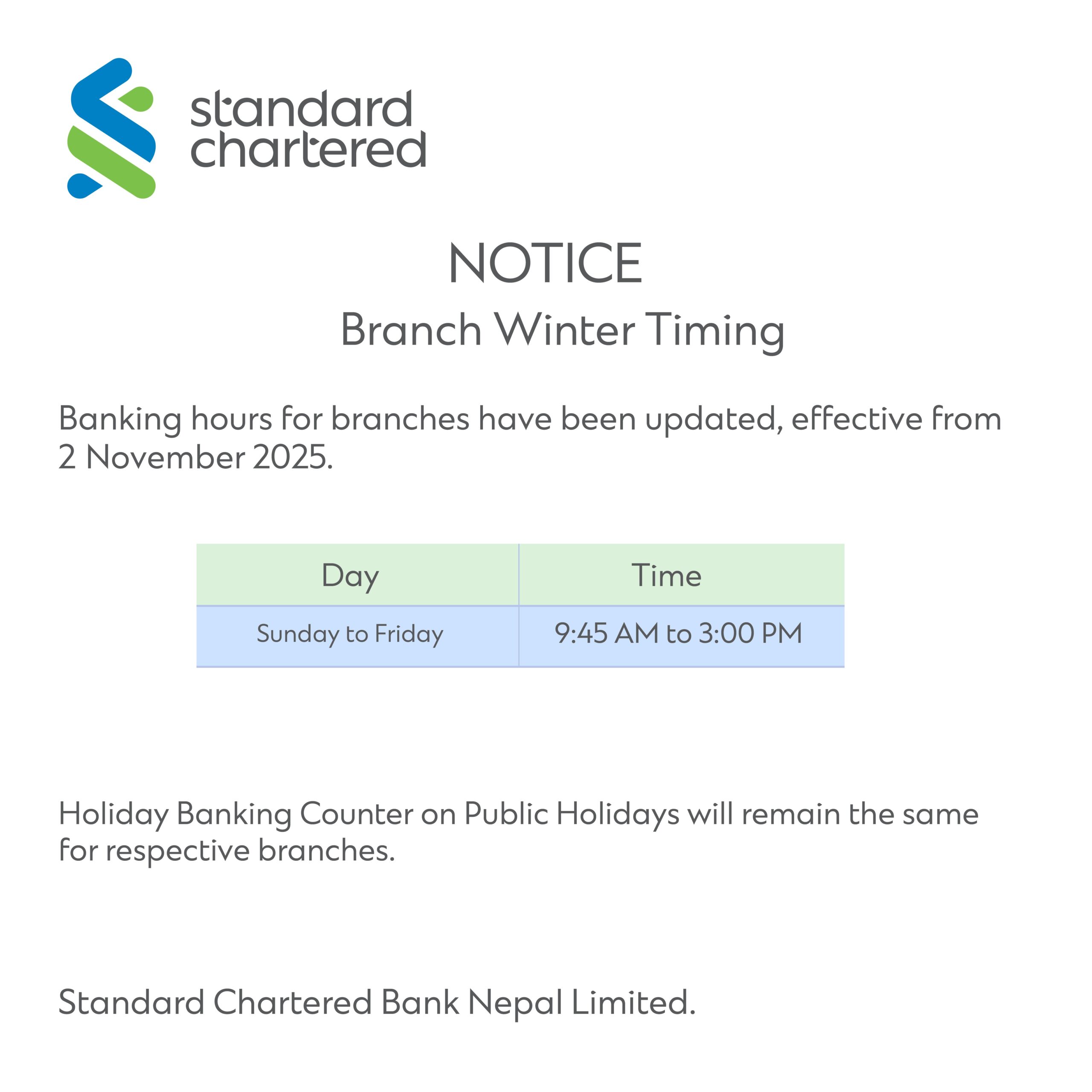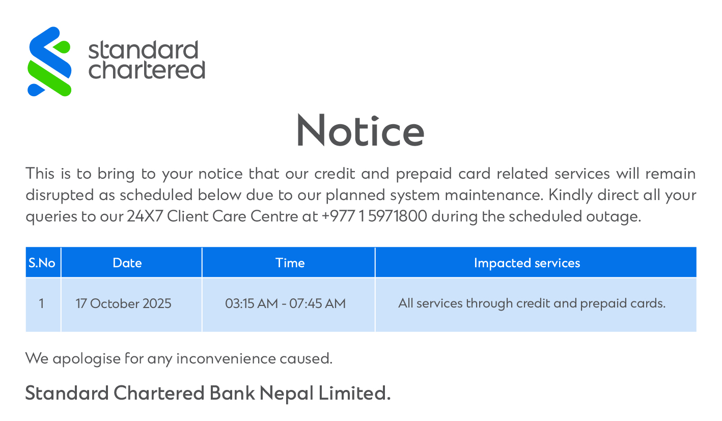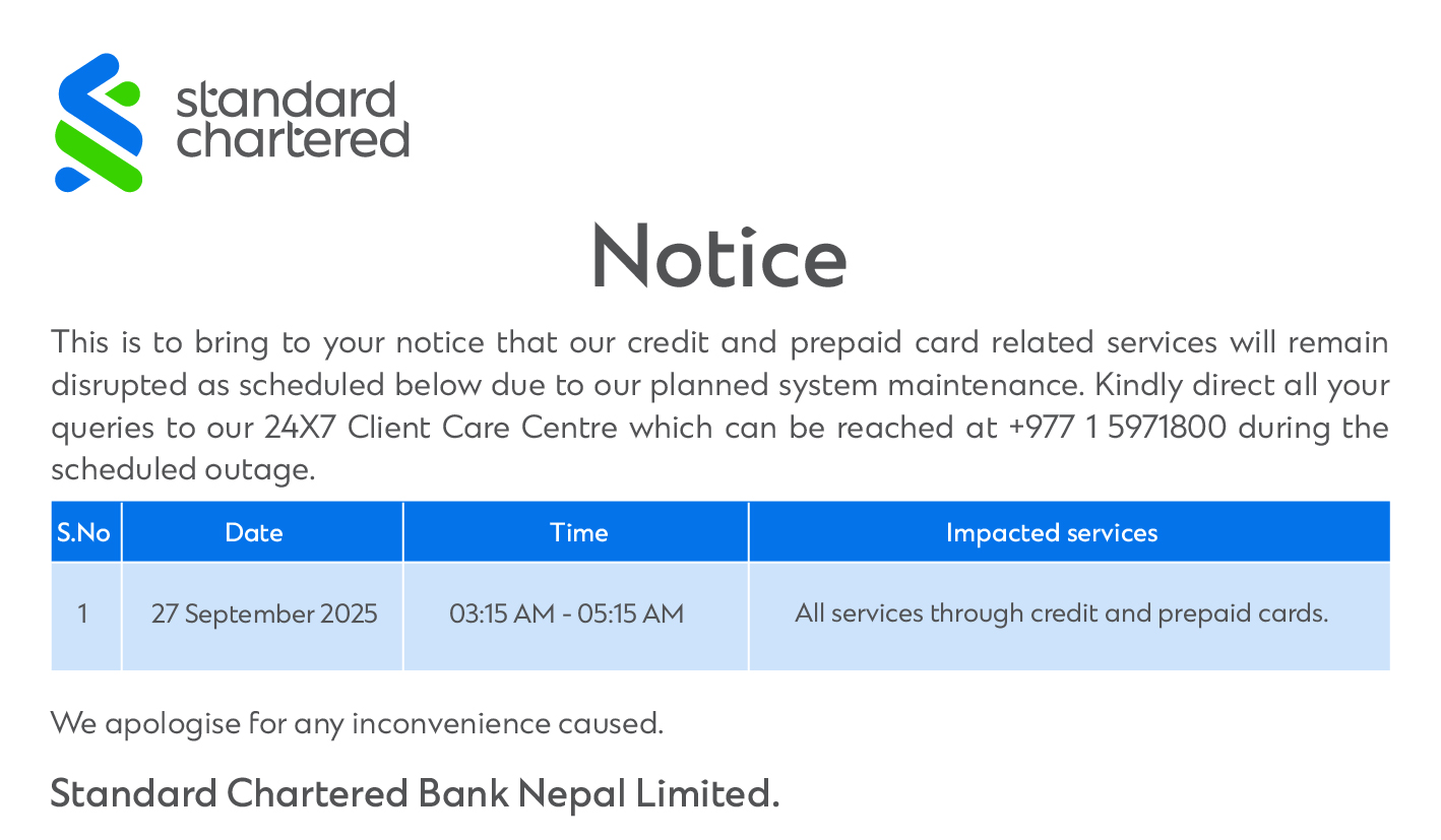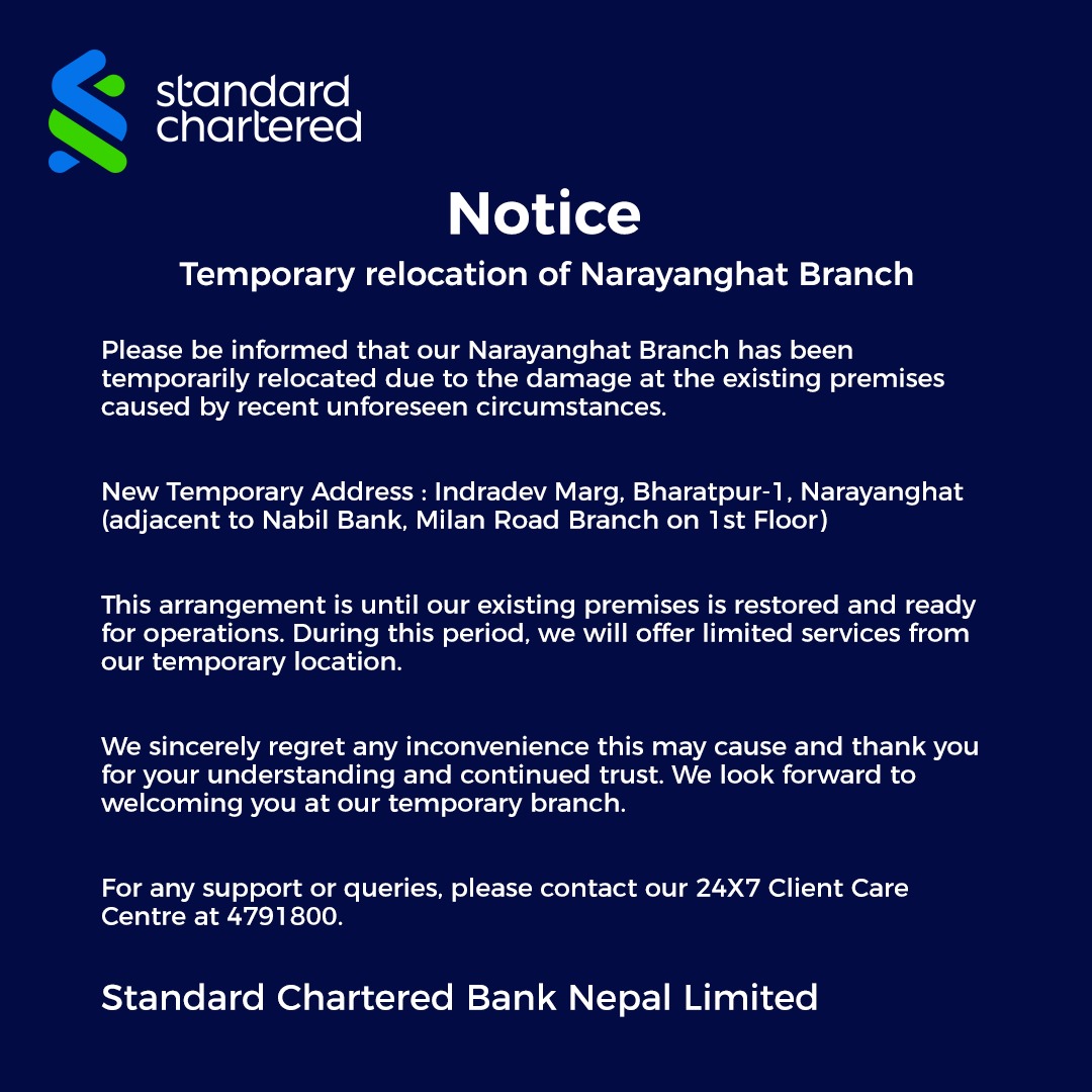 This is to inform that by clicking on the hyperlink, you will be leaving www.sc.com/np and entering a website operated by other parties: