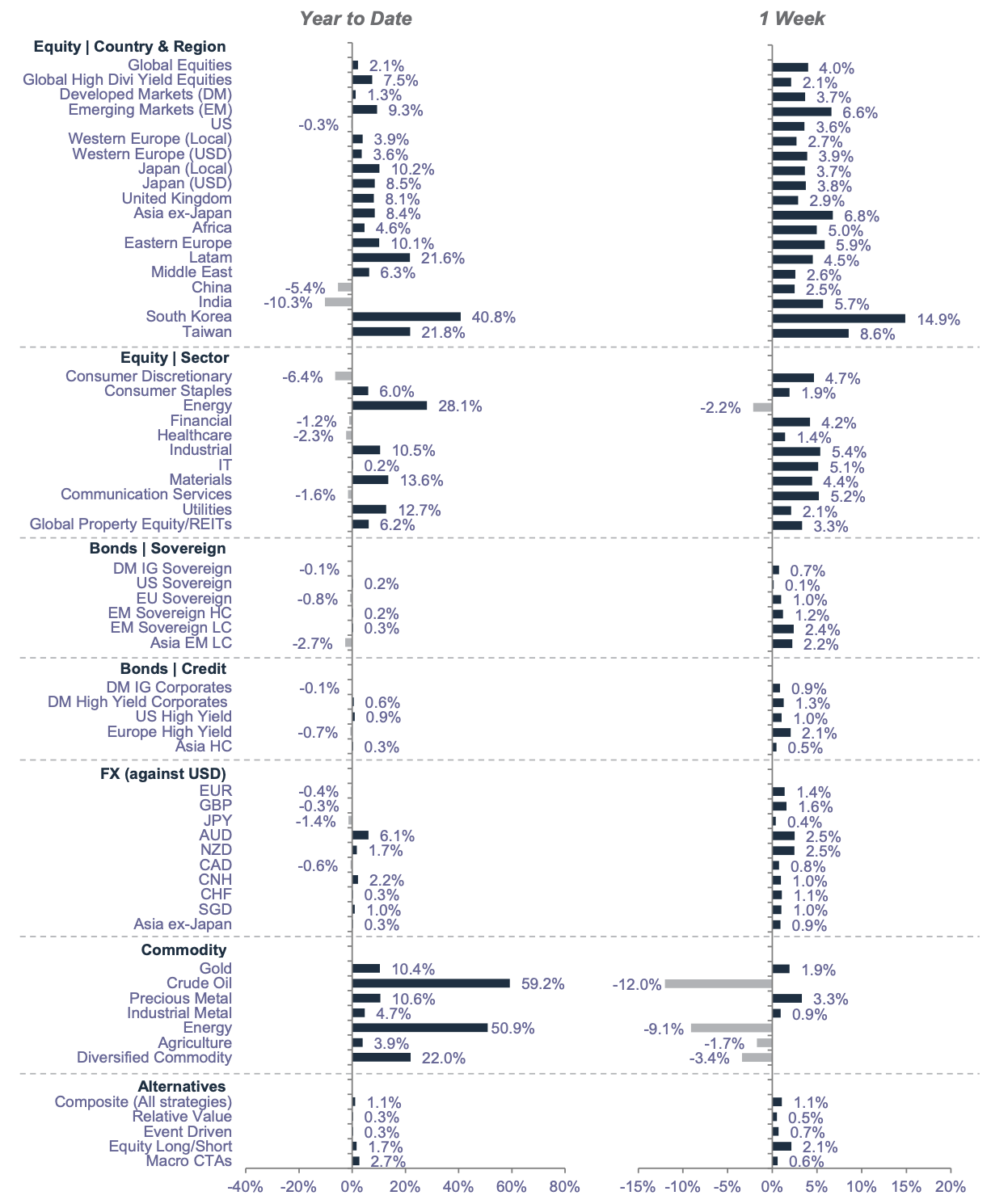 *Performance in USD terms unless otherwise stated, 2026 YTD performance from 31 December 2025 to 9 April 2026; 1-week period: 2 April 2026 to 9 April 2026