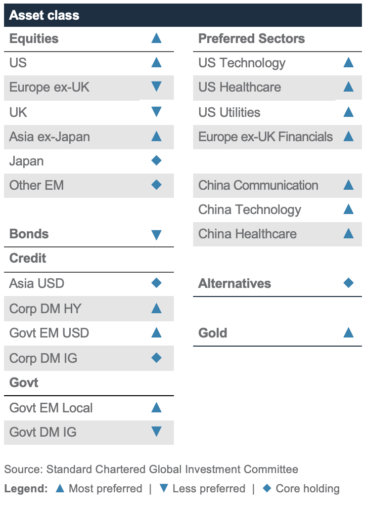 Bahrain: This document is being distributed in Bahrain by Standard Chartered Bank, Bahrain Branch, having its address at P.O. 29, Manama, Kingdom of Bahrain, is a branch of Standard Chartered Bank and is licensed by the Central Bank of Bahrain as a conventional retail bank. Botswana: This document is being distributed in Botswana by, and is attributable to, Standard Chartered Bank Botswana Limited which is a financial institution licensed under the Section 6 of the Banking Act CAP 46.04 and is listed in the Botswana Stock Exchange. Brunei Darussalam: This document is being distributed in Brunei Darussalam by, and is attributable to, Standard Chartered Bank (Brunei Branch) | Registration Number RFC/61 and Standard Chartered Securities (B) Sdn Bhd | Registration Number RC20001003. Standard Chartered Bank is incorporated in England with limited liability by Royal Charter 1853 Reference Number ZC18. Standard Chartered Securities (B) Sdn Bhd is a limited liability company registered with the Registry of Companies with Registration Number RC20001003 and licensed by Brunei Darussalam Central Bank as a Capital Markets Service License Holder with License Number BDCB/R/CMU/S3-CL and it is authorised to conduct Islamic investment business through an Islamic window. China Mainland: This document is being distributed in China by, and is attributable to, Standard Chartered Bank (China) Limited which is mainly regulated by National Financial Regulatory Administration (NFRA), State Administration of Foreign Exchange (SAFE), and People’s Bank of China (PBOC). Hong Kong: In Hong Kong, this document, except for any portion advising on or facilitating any decision on futures contracts trading, is distributed by Standard Chartered Bank (Hong Kong) Limited (“SCBHK”), a subsidiary of Standard Chartered PLC. SCBHK has its registered address at 32/F, Standard Chartered Bank Building, 4-4A Des Voeux Road Central, Hong Kong and is regulated by the Hong Kong Monetary Authority and registered with the Securities and Futures Commission (“SFC”) to carry on Type 1 (dealing in securities), Type 4 (advising on securities), Type 6 (advising on corporate finance) and Type 9 (asset management) regulated activity under the Securities and Futures Ordinance (Cap. 571) (“SFO”) (CE No. AJI614). The contents of this document have not been reviewed by any regulatory authority in Hong Kong and you are advised to exercise caution in relation to any offer set out herein. If you are in doubt about any of the contents of this document, you should obtain independent professional advice. Any product named herein may not be offered or sold in Hong Kong by means of any document at any time other than to “professional investors” as defined in the SFO and any rules made under that ordinance. In addition, this document may not be issued or possessed for the purposes of issue, whether in Hong Kong or elsewhere, and any interests may not be disposed of, to any person unless such person is outside Hong Kong or is a “professional investor” as defined in the SFO and any rules made under that ordinance, or as otherwise may be permitted by that ordinance. In Hong Kong, Standard Chartered Private Bank is the private banking division of SCBHK, a subsidiary of Standard Chartered PLC. Ghana: Standard Chartered Bank Ghana Limited accepts no liability and will not be liable for any loss or damage arising directly or indirectly (including special, incidental or consequential loss or damage) from your use of these documents. Past performance is not indicative of future results and no representation or warranty is made regarding future performance. You should seek advice from a financial adviser on the suitability of an investment for you, taking into account these factors before making a commitment to invest in an investment. To unsubscribe from receiving further updates, please send an email to feedback.ghana@sc.com. Please do not reply to this email. Call our Priority Banking on 0302610750 for any questions or service queries. You are advised not to send any confidential and/or important information to Standard Chartered via e-mail, as Standard Chartered makes no representations or warranties as to the security or accuracy of any information transmitted via e-mail. Standard Chartered shall not be responsible for any loss or damage suffered by you arising from your decision to use e-mail to communicate with the Bank. India: This document is being distributed in India by Standard Chartered in its capacity as a distributor of mutual funds and referrer of any other third party financial products. Standard Chartered does not offer any ‘Investment Advice’ as defined in the Securities and Exchange Board of India (Investment Advisers) Regulations, 2013 or otherwise. Services/products related securities business offered by Standard Charted are not intended for any person, who is a resident of any jurisdiction, the laws of which imposes prohibition on soliciting the securities business in that jurisdiction without going through the registration requirements and/or prohibit the use of any information contained in this document. Indonesia: This document is being distributed in Indonesia by Standard Chartered Bank, Indonesia branch, which is a financial institution licensed and supervised by Otoritas Jasa Keuangan (Financial Service Authority) and Bank Indonesia. Jersey: In Jersey, Standard Chartered Private Bank is the Registered Business Name of the Jersey Branch of Standard Chartered Bank. The Jersey Branch of Standard Chartered Bank is regulated by the Jersey Financial Services Commission. Copies of the latest audited accounts of Standard Chartered Bank are available from its principal place of business in Jersey: PO Box 80, 15 Castle Street, St Helier, Jersey JE4 8PT. Standard Chartered Bank is incorporated in England with limited liability by Royal Charter in 1853 Reference Number ZC 18. The Principal Office of the Company is situated i