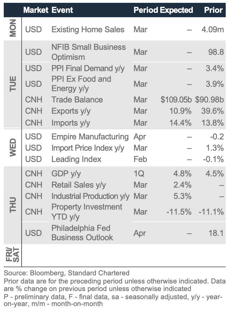 Rationale: Amid geopolitical volatility, the earnings season is a good time to revisit the fundamental health of US corporates. The consensus estimate is for 14.4% earnings growth in Q1 2026 for the S&P500, led by the technology, materials and financials sectors. Healthcare, communication services and consumer discretionary remain laggards. Given the oil price spike, investors will monitor guidance on cost inflation as well as supply chain disruptions.