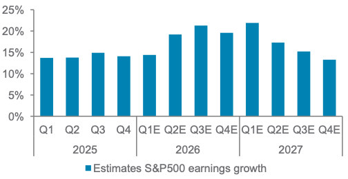 US earnings are expected to grow strongly in 2026 and 2027, led by the technology sector