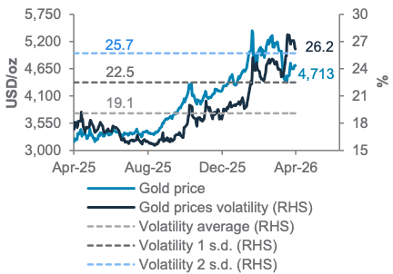 Gold volatility has surged significantly since the Middle East conflict began in February