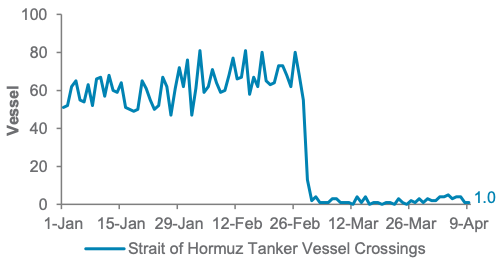 Strait of Hormuz tanker crossings (latest: 9-Apr)