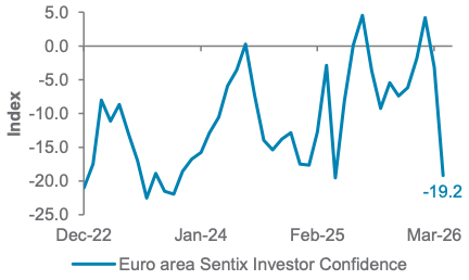 Euro area Sentix investor confidence fell to softest reading since April 2025 as investor sentiment plunges amid the US-Iran conflict