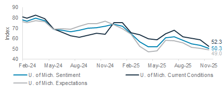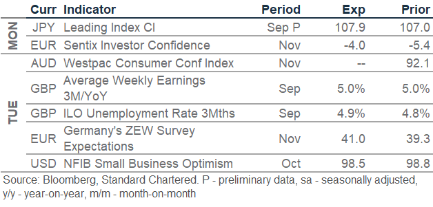 Potential USD downside following weaker consumer sentiment: The USD fell on Friday following a decline in the University of Michigan Sentiment index, which dropped to 50.3 in November, its lowest reading since June 2022. The current conditions and expectations indices both weakened. The drop was largely attributed to the US government shutdown, which has delayed key economic data releases, such as the non-farm payrolls data scheduled for Friday, and halted paycheques for Federal government workers. Meanwhile, 1-year inflation expectations rose to 4.7% as tariffs exerted upward pressure on prices. The next support for the DXY is around its 50-day moving average of 98.4.