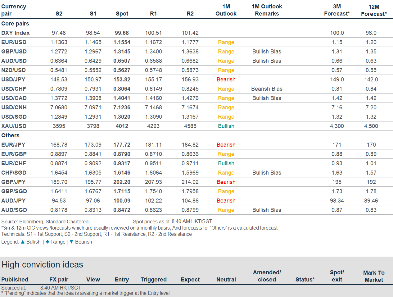 Banking activities may be carried out internationally by different branches, subsidiaries and affiliates within the Standard Chartered Group according to local regulatory requirements. Opinions may contain outright “buy”, “sell”, “hold” or other opinions. The time horizon of this opinion is dependent on prevailing market conditions and there is no planned frequency for updates to the opinion. This opinion is not independent of Standard Chartered Group’s trading strategies or positions. Standard Chartered Group and/or its affiliates or its respective officers, directors, employee benefit programmes or employees, including persons involved in the preparation or issuance of this document may at any time, to the extent permitted by applicable law and/or regulation, be long or short any securities or financial instruments referred to in this document or have material interest in any such securities or related investments. Therefore, it is possible, and you should assume, that Standard Chartered Group has a material interest in one or more of the financial instruments mentioned herein. Please refer to our Standard Chartered website under Regulatory disclosures for more detailed disclosures, including past opinions/ recommendations in the last 12 months and conflict of interests, as well as disclaimers. A covering strategist may have a financial interest in the debt or equity securities of this company/issuer. All covering strategist are licensed to provide investment recommendations under Monetary Authority of Singapore or Hong Kong Monetary Authority. This document must not be forwarded or otherwise made available to any other person without the express written consent of Standard Chartered Group.