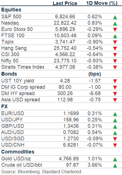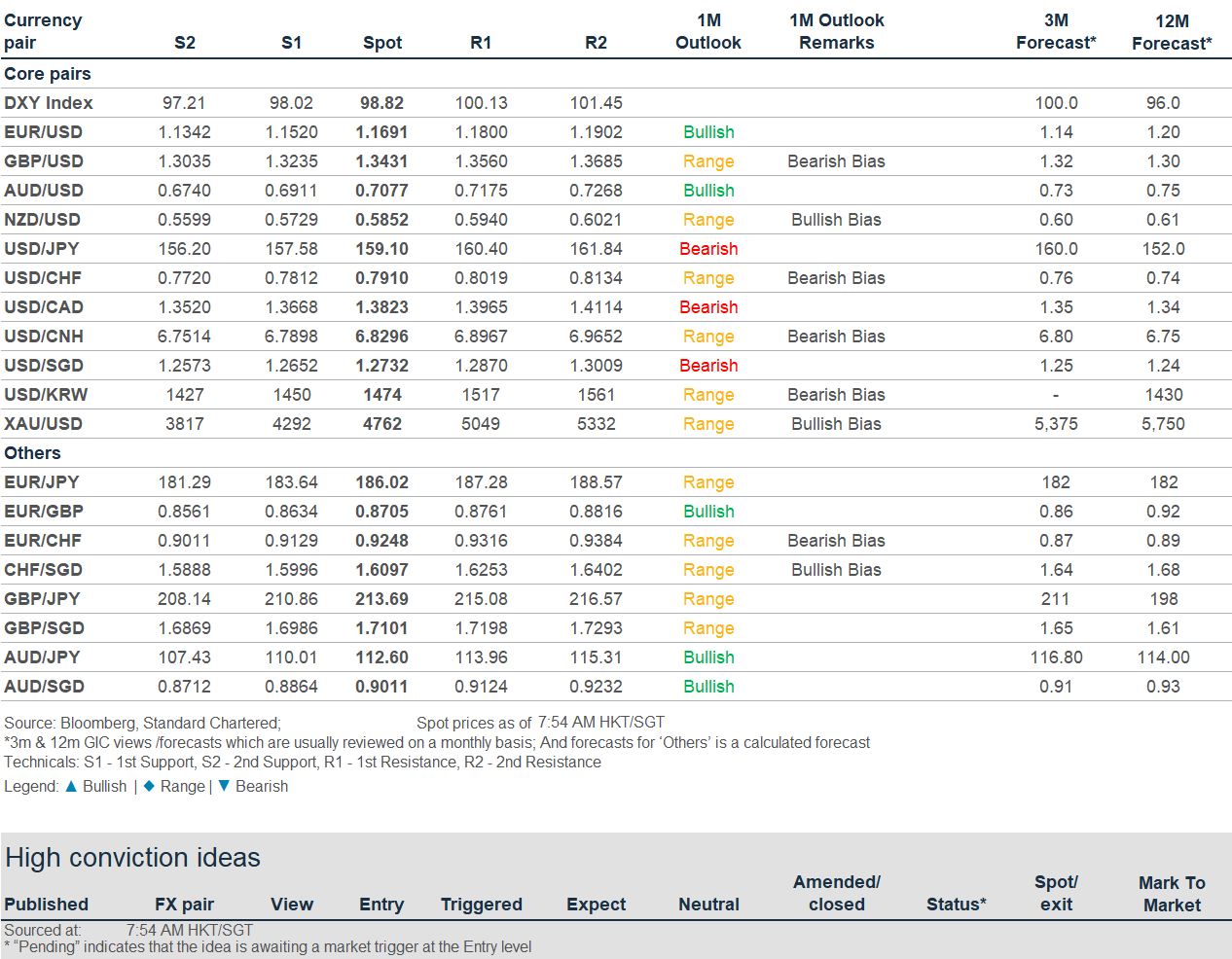 Banking activities may be carried out internationally by different branches, subsidiaries and affiliates within the Standard Chartered Group according to local regulatory requirements. Opinions may contain outright “buy”, “sell”, “hold” or other opinions. The time horizon of this opinion is dependent on prevailing market conditions and there is no planned frequency for updates to the opinion. This opinion is not independent of Standard Chartered Group’s trading strategies or positions. Standard Chartered Group and/or its affiliates or its respective officers, directors, employee benefit programmes or employees, including persons involved in the preparation or issuance of this document may at any time, to the extent permitted by applicable law and/or regulation, be long or short any securities or financial instruments referred to in this document or have material interest in any such securities or related investments. Therefore, it is possible, and you should assume, that Standard Chartered Group has a material interest in one or more of the financial instruments mentioned herein. Please refer to our Standard Chartered website under Regulatory disclosures for more detailed disclosures, including past opinions/ recommendations in the last 12 months and conflict of interests, as well as disclaimers. A covering strategist may have a financial interest in the debt or equity securities of this company/issuer. All covering strategist are licensed to provide investment recommendations under Monetary Authority of Singapore or Hong Kong Monetary Authority. This document must not be forwarded or otherwise made available to any other person without the express written consent of Standard Chartered Group.