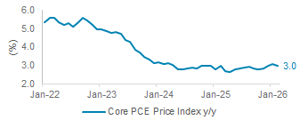 The US core PCE inflation ticked lower to 3% y/y in February