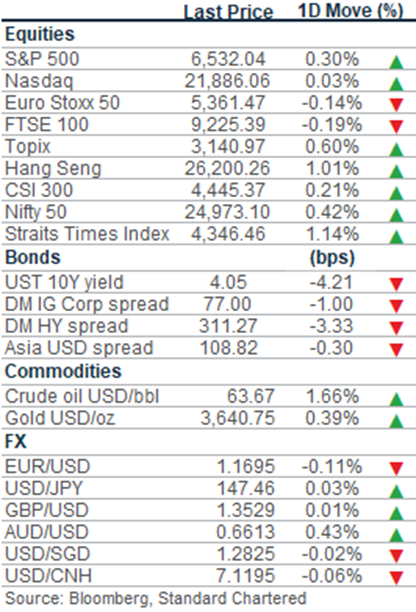 Banking activities may be carried out internationally by different branches, subsidiaries and affiliates within the Standard Chartered Group according to local regulatory requirements. Opinions may contain outright “buy”, “sell”, “hold” or other opinions. The time horizon of this opinion is dependent on prevailing market conditions and there is no planned frequency for updates to the opinion. This opinion is not independent of Standard Chartered Group’s trading strategies or positions. Standard Chartered Group and/or its affiliates or its respective officers, directors, employee benefit programmes or employees, including persons involved in the preparation or issuance of this document may at any time, to the extent permitted by applicable law and/or regulation, be long or short any securities or financial instruments referred to in this document or have material interest in any such securities or related investments. Therefore, it is possible, and you should assume, that Standard Chartered Group has a material interest in one or more of the financial instruments mentioned herein. Please refer to our Standard Chartered website under Regulatory disclosures for more detailed disclosures, including past opinions/ recommendations in the last 12 months and conflict of interests, as well as disclaimers. A covering strategist may have a financial interest in the debt or equity securities of this company/issuer. All covering strategist are licensed to provide investment recommendations under Monetary Authority of Singapore or Hong Kong Monetary Authority. This document must not be forwarded or otherwise made available to any other person without the express written consent of Standard Chartered Group.