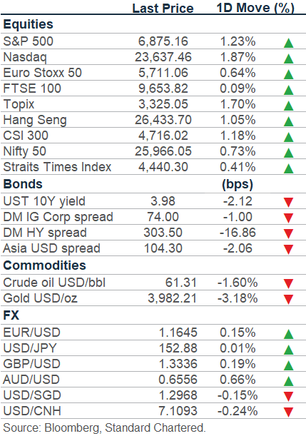 Banking activities may be carried out internationally by different branches, subsidiaries and affiliates within the Standard Chartered Group according to local regulatory requirements. Opinions may contain outright “buy”, “sell”, “hold” or other opinions. The time horizon of this opinion is dependent on prevailing market conditions and there is no planned frequency for updates to the opinion. This opinion is not independent of Standard Chartered Group’s trading strategies or positions. Standard Chartered Group and/or its affiliates or its respective officers, directors, employee benefit programmes or employees, including persons involved in the preparation or issuance of this document may at any time, to the extent permitted by applicable law and/or regulation, be long or short any securities or financial instruments referred to in this document or have material interest in any such securities or related investments. Therefore, it is possible, and you should assume, that Standard Chartered Group has a material interest in one or more of the financial instruments mentioned herein. Please refer to our Standard Chartered website under Regulatory disclosures for more detailed disclosures, including past opinions/ recommendations in the last 12 months and conflict of interests, as well as disclaimers. A covering strategist may have a financial interest in the debt or equity securities of this company/issuer. All covering strategist are licensed to provide investment recommendations under Monetary Authority of Singapore or Hong Kong Monetary Authority. This document must not be forwarded or otherwise made available to any other person without the express written consent of Standard Chartered Group.