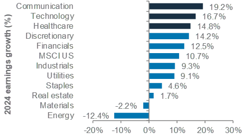 2024 earnings growth estimates of US equity sectors