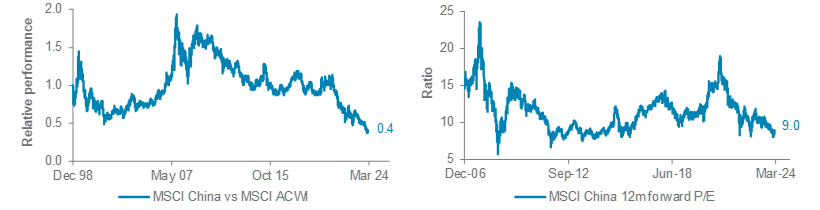 The early weeks of 2024 offered no respite for investors in China’s stock market. After three consecutive years of losses, the MSCI China index plunged a further 12.2% to a trough in January, as lacklustre growth, deflationary concerns and ongoing worries about the property sector hurt investor confidence.