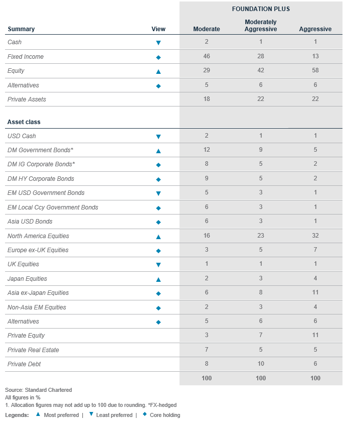 - Major equity markets have risen to all-time highs. In foundation allocations, we remain Overweight global equities, led by the US and Japan, on resilient earnings growth. A policy catalyst is likely needed for a sustained rebound in China.
