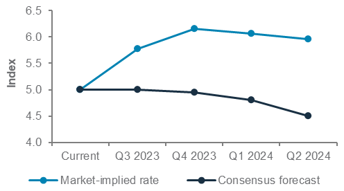 MAI strategies can deliver attractive yields over the next 6-12 months, in our view. We believe that the bulk of the rate-hiking cycle is likely behind us. With inflation still significantly above central banks’ target level, policymakers are likely biased to maintain their hawkish rhetoric. The surprise rate hike by the Reserve Bank of Canada and Australia (after previously signalling a pause) also points to the low risk of any premature easing if inflation remains high. That said, the sensitivity of MAI strategies to whether Fed fund rate peaks at 5.25% or 5.75% is likely to be low. As such, MAI strategies are likely to continue delivering reasonably high yields relative to history over the coming months before central banks move decisively to cut rates.