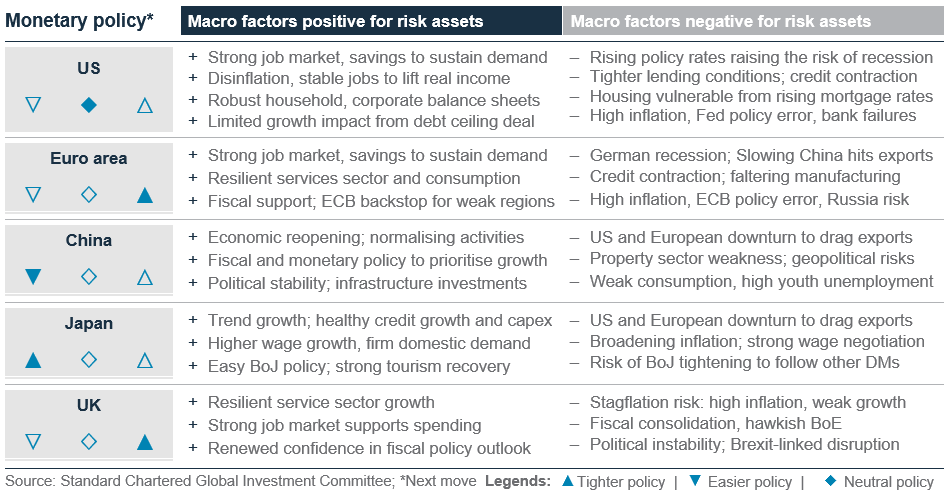 - As we enter H2 2023, two extreme narratives are jostling for investors’ attention. First, a ‘no-landing’ scenario which argues for chasing equities higher as the US avoids a recession altogether. Second, a scenario where risky assets are not worth holding at all as a deep recession awaits.