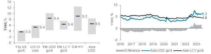 Fig. 4 DM HY and Asia USD bonds offer more attractive yields per unit of interest rate risk