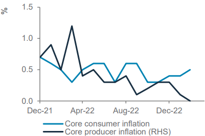 Elevated consumer inflation still warrants tight monetary policy, although slowing producer price inflation points to a cooling of prices ahead