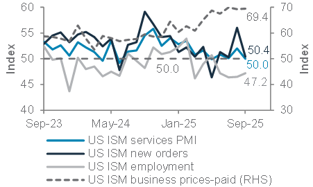 US leading the way. The US is the leading proponent of fiscal easing as it continues to run a fiscal deficit above 6% when the economy is growing above trend. The budget for the new fiscal year which started on 1 October will add to those deficits. President Trump’s efforts to gain control over the Fed reinforces concerns about fiscal dominance as it harks back to former President Nixon’s pressure on former Fed Chair Burns to engage in expansionary monetary policies in the 1970s. Trump’s tighter immigration policies add to inflation concerns.