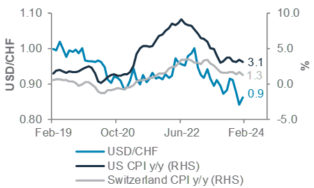 USD/CHF with US and Switzerland CPI y/y