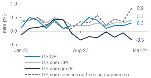A hotter-than-expected US inflation report has raised doubts about the chances of early Fed rate cuts, interrupting the US equity rally and boosting the USD. There are elements of the report that need to be watched closely, notably the continued uptrend in services inflation. However, it is too soon to conclude that this signals a reversal of the ongoing disinflationary process. While recent US economic activity indicators have been mostly resilient, there are signs of emerging weakness which we expect to eventually weigh on inflation later this year.