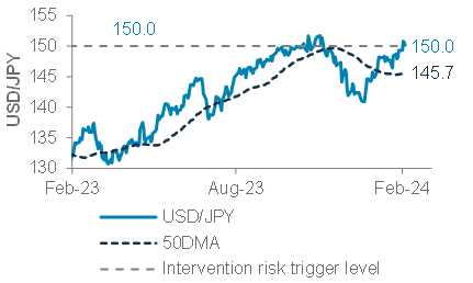 Prefer Japan: Japan equities continue to look attractive, especially with the weak JPY. Latest data showing a technical recession in H2 2023 is likely to further delay any BoJ tightening – this should be supportive of Japanese equities.