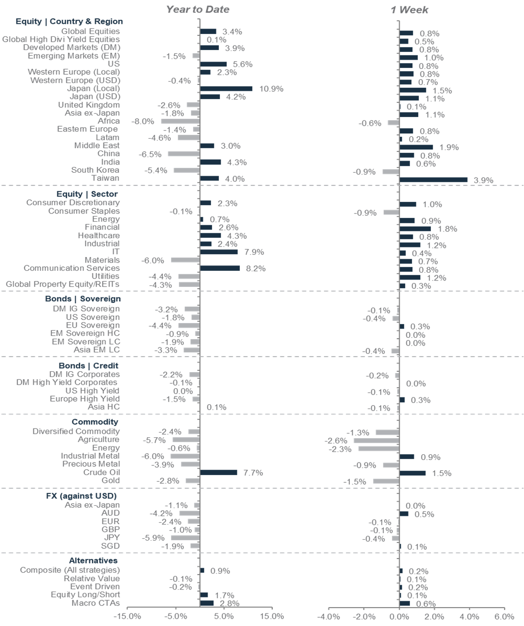 *Performance in USD terms unless otherwise stated, 2024 YTD performance from 31 December 2023 to 15 February 2024; 1-week period: 08 February 2024 to 15 February 2024