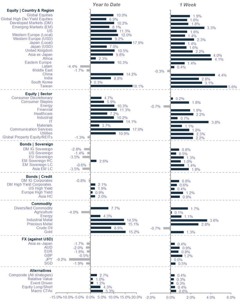 *Performance in USD terms unless otherwise stated, 2024 YTD performance from 31 December 2023 to 16 May 2024; 1-week period: 9 May 2024 to 16 May 2024