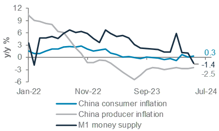 China continued to struggle with deflationary pressure; falling money supply reflects reduced demand for credit