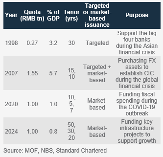 China’s Ministry of Finance commenced the issuance of ultra-long-term special central government bonds (SCGB), with a plan to issue CNY 1tn over the next seven months. This came after the Politburo committed to frontload the sale of SCGBs at its April meeting. The timing of the debt is likely intended to offset the impact of credit contraction resulting from a slump in Q1 24 bond issuance. The proceeds from the SCGBs are likely to be used to fund infrastructure investments that would be supportive for growth. There are concerns that the influx in bond supply could strain liquidity, but we believe this is manageable given the long issuance timeline, ready state bank buyers and PBoC assistance.