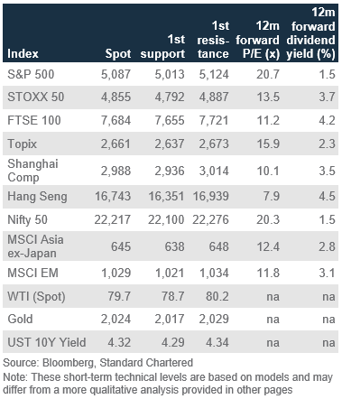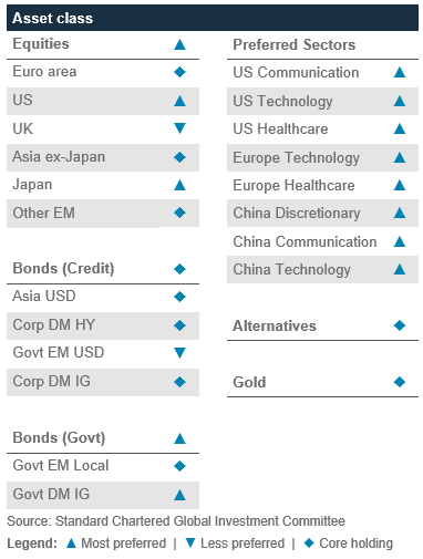 Investment implications: The US, backed by strong corporate earnings (especially in our preferred sectors) and Japan, backed by strong inflows, remain our top picks in global equity markets. Meanwhile, the US and European healthcare sector’s earnings resilience through economic cycles make it an attractive sector to add exposure on any pullbacks. In China, while we await further policy measures, we would add exposure to technology, communication services and consumer discretionary sectors, which are likely to benefit the most from policies to drive innovation to boost China’s competitiveness and from the nascent upturn in consumer demand.