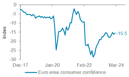 Euro area consumer confidence held up, mirroring a recovery in economic growth expectations