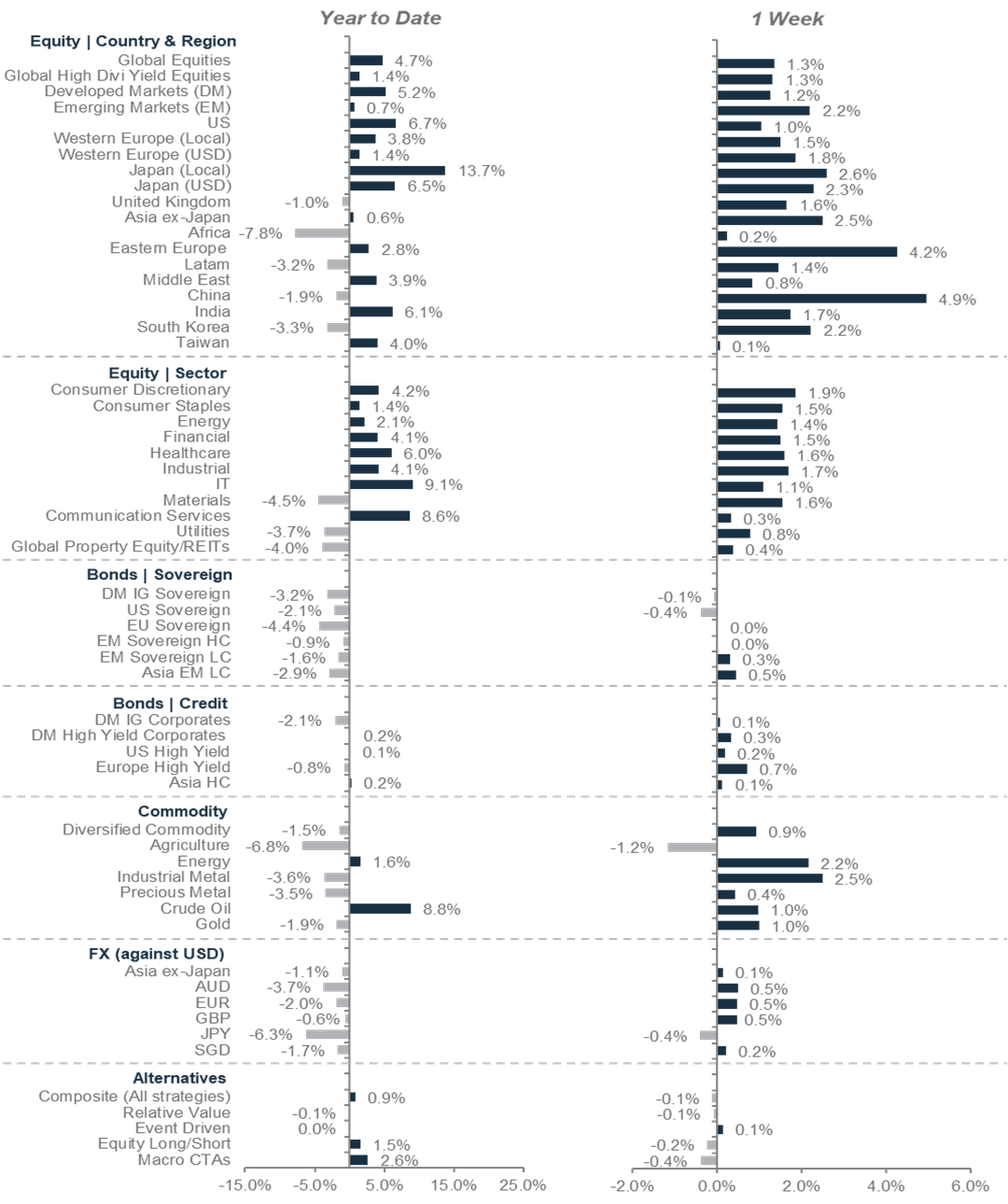 *Performance in USD terms unless otherwise stated, 2024 YTD performance from 31 December 2023 to 22 February 2024; 1-week period: 15 February 2024 to 22 February 2024