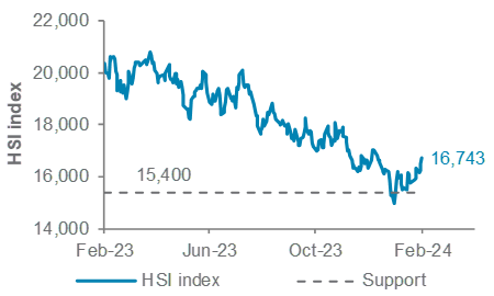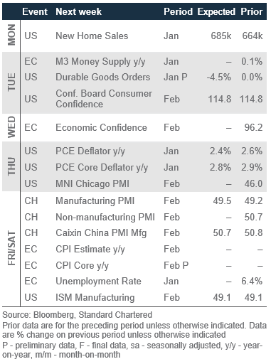 There is rising chance of a tactical upside in China and Asia-ex-Japan equities in the near term. Nevertheless, some investors are still waiting for more forceful demand-side fiscal and credit stimulus measures to revive the property sector and boost business confidence for a sustained upturn in China equities. China’s upcoming National People’s Congress in March will be closely watched.