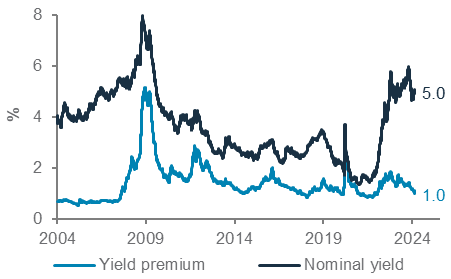 Global Investment Grade corporate bond nominal yields are attractive despite tight yield premiums
