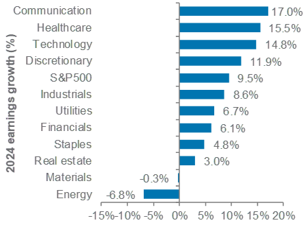 Our preferred US equity sectors (technology, communication services and healthcare) are expected to deliver the highest earnings growth in 2024