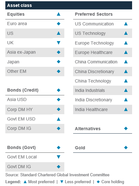 Bahrain: This document is being distributed in Bahrain by Standard Chartered Bank, Bahrain Branch, having its address at P.O. 29, Manama, Kingdom of Bahrain, is a branch of Standard Chartered Bank and is licensed by the Central Bank of Bahrain as a conventional retail bank. Botswana: This document is being distributed in Botswana by, and is attributable to, Standard Chartered Bank Botswana Limited which is a financial institution licensed under the Section 6 of the Banking Act CAP 46.04 and is listed in the Botswana Stock Exchange. Brunei Darussalam: This document is being distributed in Brunei Darussalam by, and is attributable to, Standard Chartered Bank (Brunei Branch) | Registration Number RFC/61 and Standard Chartered Securities (B) Sdn Bhd | Registration Number RC20001003. Standard Chartered Bank is incorporated in England with limited liability by Royal Charter 1853 Reference Number ZC18. Standard Chartered Securities (B) Sdn Bhd is a limited liability company registered with the Registry of Companies with Registration Number RC20001003 and licensed by Brunei Darussalam Central Bank as a Capital Markets Service License Holder with License Number BDCB/R/CMU/S3-CL and it is authorised to conduct Islamic investment business through an Islamic window. China Mainland: This document is being distributed in China by, and is attributable to, Standard Chartered Bank (China) Limited which is mainly regulated by National Financial Regulatory Administration (NFRA), State Administration of Foreign Exchange (SAFE), and People’s Bank of China (PBOC). Hong Kong: In Hong Kong, this document, except for any portion advising on or facilitating any decision on futures contracts trading, is distributed by Standard Chartered Bank (Hong Kong) Limited (“SCBHK”), a subsidiary of Standard Chartered PLC. SCBHK has its registered address at 32/F, Standard Chartered Bank Building, 4-4A Des Voeux Road Central, Hong Kong and is regulated by the Hong Kong Monetary Authority and registered with the Securities and Futures Commission (“SFC”) to carry on Type 1 (dealing in securities), Type 4 (advising on securities), Type 6 (advising on corporate finance) and Type 9 (asset management) regulated activity under the Securities and Futures Ordinance (Cap. 571) (“SFO”) (CE No. AJI614). The contents of this document have not been reviewed by any regulatory authority in Hong Kong and you are advised to exercise caution in relation to any offer set out herein. If you are in doubt about any of the contents of this document, you should obtain independent professional advice. Any product named herein may not be offered or sold in Hong Kong by means of any document at any time other than to “professional investors” as defined in the SFO and any rules made under that ordinance. In addition, this document may not be issued or possessed for the purposes of issue, whether in Hong Kong or elsewhere, and any interests may not be disposed of, to any person unless such person is outside Hong Kong or is a “professional investor” as defined in the SFO and any rules made under that ordinance, or as otherwise may be permitted by that ordinance. In Hong Kong, Standard Chartered Private Bank is the private banking division of SCBHK, a subsidiary of Standard Chartered PLC. Ghana: Standard Chartered Bank Ghana Limited accepts no liability and will not be liable for any loss or damage arising directly or indirectly (including special, incidental or consequential loss or damage) from your use of these documents. Past performance is not indicative of future results and no representation or warranty is made regarding future performance. You should seek advice from a financial adviser on the suitability of an investment for you, taking into account these factors before making a commitment to invest in an investment. To unsubscribe from receiving further updates, please send an email to feedback.ghana@sc.com. Please do not reply to this email. Call our Priority Banking on 0302610750 for any questions or service queries. You are advised not to send any confidential and/or important information to Standard Chartered via e-mail, as Standard Chartered makes no representations or warranties as to the security or accuracy of any information transmitted via e-mail. Standard Chartered shall not be responsible for any loss or damage suffered by you arising from your decision to use e-mail to communicate with the Bank. India: This document is being distributed in India by Standard Chartered in its capacity as a distributor of mutual funds and referrer of any other third party financial products. Standard Chartered does not offer any ‘Investment Advice’ as defined in the Securities and Exchange Board of India (Investment Advisers) Regulations, 2013 or otherwise. Services/products related securities business offered by Standard Charted are not intended for any person, who is a resident of any jurisdiction, the laws of which imposes prohibition on soliciting the securities business in that jurisdiction without going through the registration requirements and/or prohibit the use of any information contained in this document. Indonesia: This document is being distributed in Indonesia by Standard Chartered Bank, Indonesia branch, which is a financial institution licensed and supervised by Otoritas Jasa Keuangan (Financial Service Authority) and Bank Indonesia. Jersey: In Jersey, Standard Chartered Private Bank is the Registered Business Name of the Jersey Branch of Standard Chartered Bank. The Jersey Branch of Standard Chartered Bank is regulated by the Jersey Financial Services Commission. Copies of the latest audited accounts of Standard Chartered Bank are available from its principal place of business in Jersey: PO Box 80, 15 Castle Street, St Helier, Jersey JE4 8PT. Standard Chartered Bank is incorporated in England with limited liability by Royal Charter in 1853 Reference Number ZC 18. The Principal Office of the Company is situated i