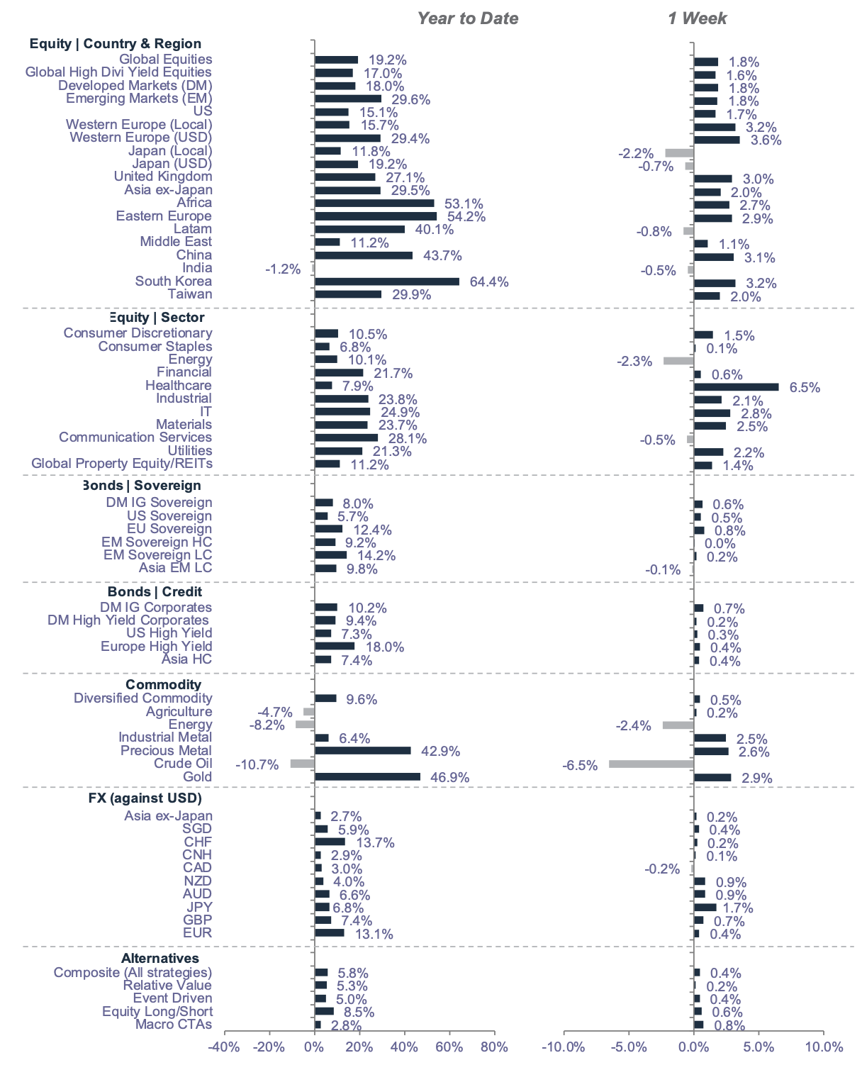 *Performance in USD terms unless otherwise stated, 2025 YTD performance from 31 December 2024 to 2 October 2025; 1-week period: 25 September 2025 to 2 October 2025