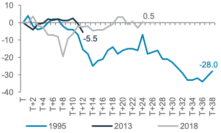 Rationale: In a brief shutdown scenario, we see limited impact on growth and corporate earnings, and little impact on US equities. In a prolonged shutdown, the uncertainty would lead to rising volatility and fears about consumer spending weakness. This could impact growth expectations and the US equities earnings outlook, resulting in a pullback.