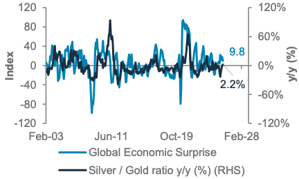 Global economic surprise index and Silver/Gold ratio