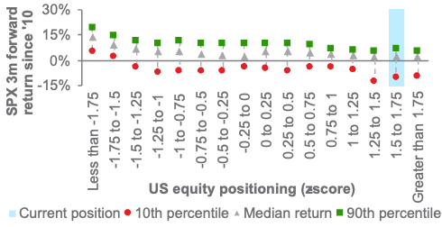 US equity investor positioning, blue bar = current z-score 1.65