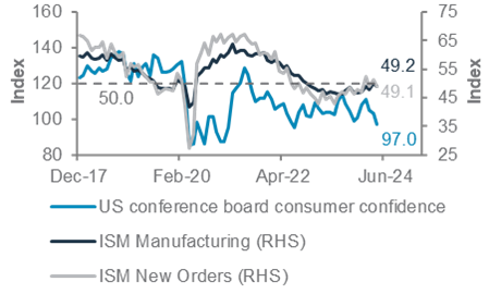US consumer confidence, ISM Manufacturing and ISM New Orders PMI