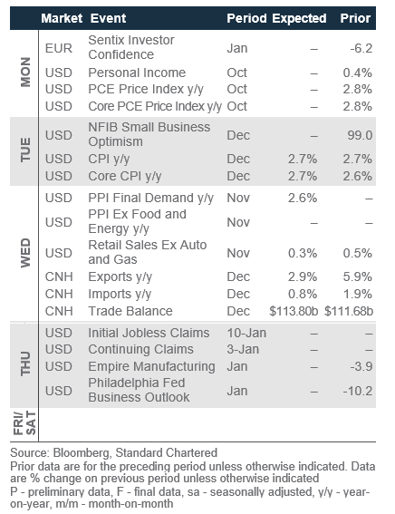 Rationale: Major US banks will kick off the US earnings season. The consensus expects Q4 2025 US earnings growth of 8.9% y/y, a deceleration from 14.9% in Q3 2025 (source: LSEG I/B/E/S). Thereafter, we expect growth to re-accelerate to 14-18% over the four quarters of 2026. Corporate guidance on the 2026 outlook will be critical in driving further gains in US equities.