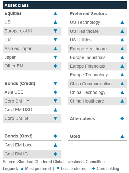 Bahrain: This document is being distributed in Bahrain by Standard Chartered Bank, Bahrain Branch, having its address at P.O. 29, Manama, Kingdom of Bahrain, is a branch of Standard Chartered Bank and is licensed by the Central Bank of Bahrain as a conventional retail bank. Botswana: This document is being distributed in Botswana by, and is attributable to, Standard Chartered Bank Botswana Limited which is a financial institution licensed under the Section 6 of the Banking Act CAP 46.04 and is listed in the Botswana Stock Exchange. Brunei Darussalam: This document is being distributed in Brunei Darussalam by, and is attributable to, Standard Chartered Bank (Brunei Branch) | Registration Number RFC/61 and Standard Chartered Securities (B) Sdn Bhd | Registration Number RC20001003. Standard Chartered Bank is incorporated in England with limited liability by Royal Charter 1853 Reference Number ZC18. Standard Chartered Securities (B) Sdn Bhd is a limited liability company registered with the Registry of Companies with Registration Number RC20001003 and licensed by Brunei Darussalam Central Bank as a Capital Markets Service License Holder with License Number BDCB/R/CMU/S3-CL and it is authorised to conduct Islamic investment business through an Islamic window. China Mainland: This document is being distributed in China by, and is attributable to, Standard Chartered Bank (China) Limited which is mainly regulated by National Financial Regulatory Administration (NFRA), State Administration of Foreign Exchange (SAFE), and People’s Bank of China (PBOC). Hong Kong: In Hong Kong, this document, except for any portion advising on or facilitating any decision on futures contracts trading, is distributed by Standard Chartered Bank (Hong Kong) Limited (“SCBHK”), a subsidiary of Standard Chartered PLC. SCBHK has its registered address at 32/F, Standard Chartered Bank Building, 4-4A Des Voeux Road Central, Hong Kong and is regulated by the Hong Kong Monetary Authority and registered with the Securities and Futures Commission (“SFC”) to carry on Type 1 (dealing in securities), Type 4 (advising on securities), Type 6 (advising on corporate finance) and Type 9 (asset management) regulated activity under the Securities and Futures Ordinance (Cap. 571) (“SFO”) (CE No. AJI614). The contents of this document have not been reviewed by any regulatory authority in Hong Kong and you are advised to exercise caution in relation to any offer set out herein. If you are in doubt about any of the contents of this document, you should obtain independent professional advice. Any product named herein may not be offered or sold in Hong Kong by means of any document at any time other than to “professional investors” as defined in the SFO and any rules made under that ordinance. In addition, this document may not be issued or possessed for the purposes of issue, whether in Hong Kong or elsewhere, and any interests may not be disposed of, to any person unless such person is outside Hong Kong or is a “professional investor” as defined in the SFO and any rules made under that ordinance, or as otherwise may be permitted by that ordinance. In Hong Kong, Standard Chartered Private Bank is the private banking division of SCBHK, a subsidiary of Standard Chartered PLC. Ghana: Standard Chartered Bank Ghana Limited accepts no liability and will not be liable for any loss or damage arising directly or indirectly (including special, incidental or consequential loss or damage) from your use of these documents. Past performance is not indicative of future results and no representation or warranty is made regarding future performance. You should seek advice from a financial adviser on the suitability of an investment for you, taking into account these factors before making a commitment to invest in an investment. To unsubscribe from receiving further updates, please send an email to feedback.ghana@sc.com. Please do not reply to this email. Call our Priority Banking on 0302610750 for any questions or service queries. You are advised not to send any confidential and/or important information to Standard Chartered via e-mail, as Standard Chartered makes no representations or warranties as to the security or accuracy of any information transmitted via e-mail. Standard Chartered shall not be responsible for any loss or damage suffered by you arising from your decision to use e-mail to communicate with the Bank. India: This document is being distributed in India by Standard Chartered in its capacity as a distributor of mutual funds and referrer of any other third party financial products. Standard Chartered does not offer any ‘Investment Advice’ as defined in the Securities and Exchange Board of India (Investment Advisers) Regulations, 2013 or otherwise. Services/products related securities business offered by Standard Charted are not intended for any person, who is a resident of any jurisdiction, the laws of which imposes prohibition on soliciting the securities business in that jurisdiction without going through the registration requirements and/or prohibit the use of any information contained in this document. Indonesia: This document is being distributed in Indonesia by Standard Chartered Bank, Indonesia branch, which is a financial institution licensed and supervised by Otoritas Jasa Keuangan (Financial Service Authority) and Bank Indonesia. Jersey: In Jersey, Standard Chartered Private Bank is the Registered Business Name of the Jersey Branch of Standard Chartered Bank. The Jersey Branch of Standard Chartered Bank is regulated by the Jersey Financial Services Commission. Copies of the latest audited accounts of Standard Chartered Bank are available from its principal place of business in Jersey: PO Box 80, 15 Castle Street, St Helier, Jersey JE4 8PT. Standard Chartered Bank is incorporated in England with limited liability by Royal Charter in 1853 Reference Number ZC 18. The Principal Office of the Company is situated i