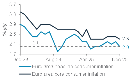 Euro area headline and core consumer inflation slowed in December